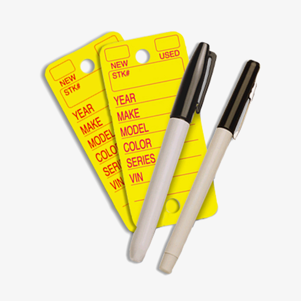 Yellow Poly Car Key Tags with 250 Rings (Includes 2 Fine Tip Markers)