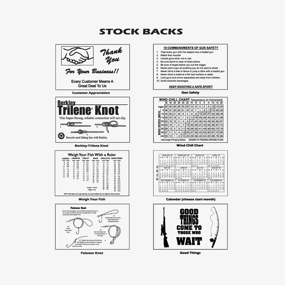 Additional images show back printing, border and stock art options